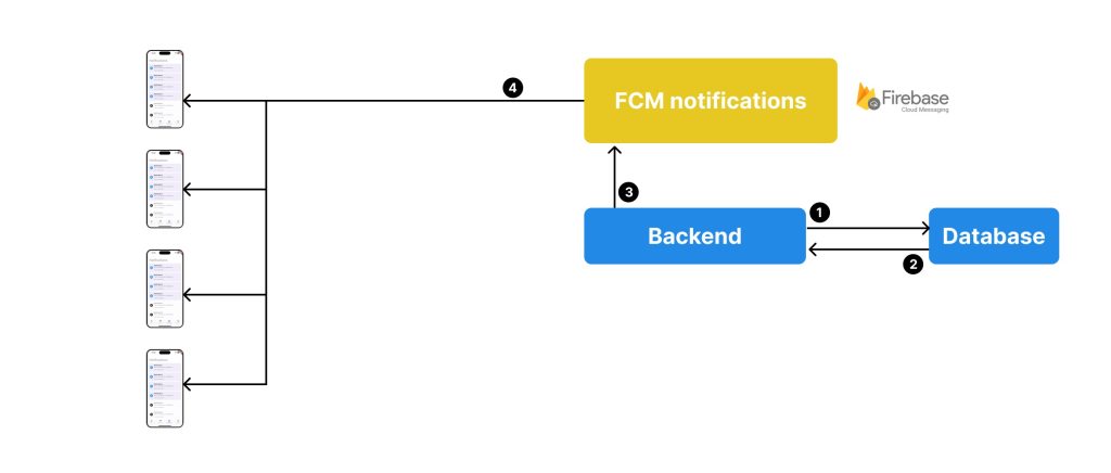 To send notifications from the backend, we use Firebase Cloud Messaging (FCM) HTTP v1 API.