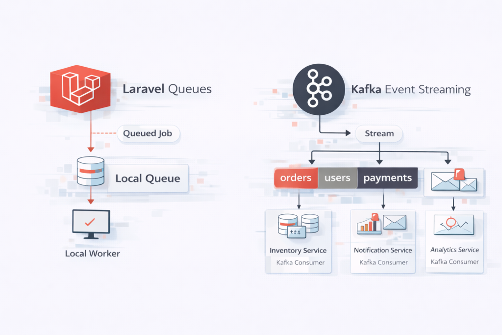 This is where Apache Kafka fits naturally into the Laravel ecosystem. This article explains how Kafka modernizes Laravel event systems, using architecture visuals, Laravel specific callouts, and an editorial narrative suitable for production publishing.